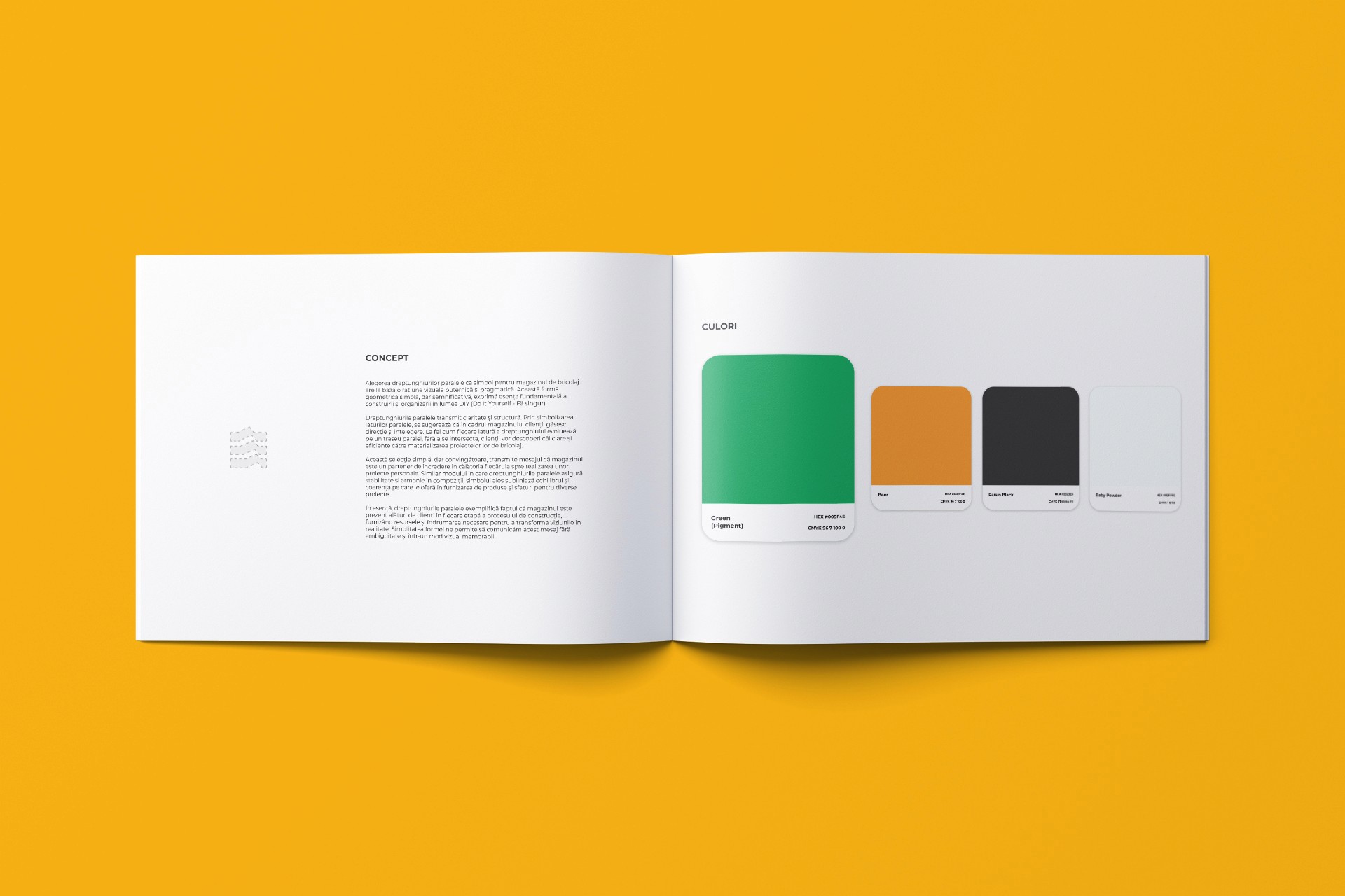 În esență, dreptunghiurile paralele exemplifică faptul că magazinul este prezent alături de clienți în fiecare etapă a procesului de construcție, furnizând resursele și îndrumarea necesare pentru a transforma viziunile în realitate. Simplitatea formei ne permite să comunicăm acest mesaj fără ambiguitate și într-un mod vizual memorabil.