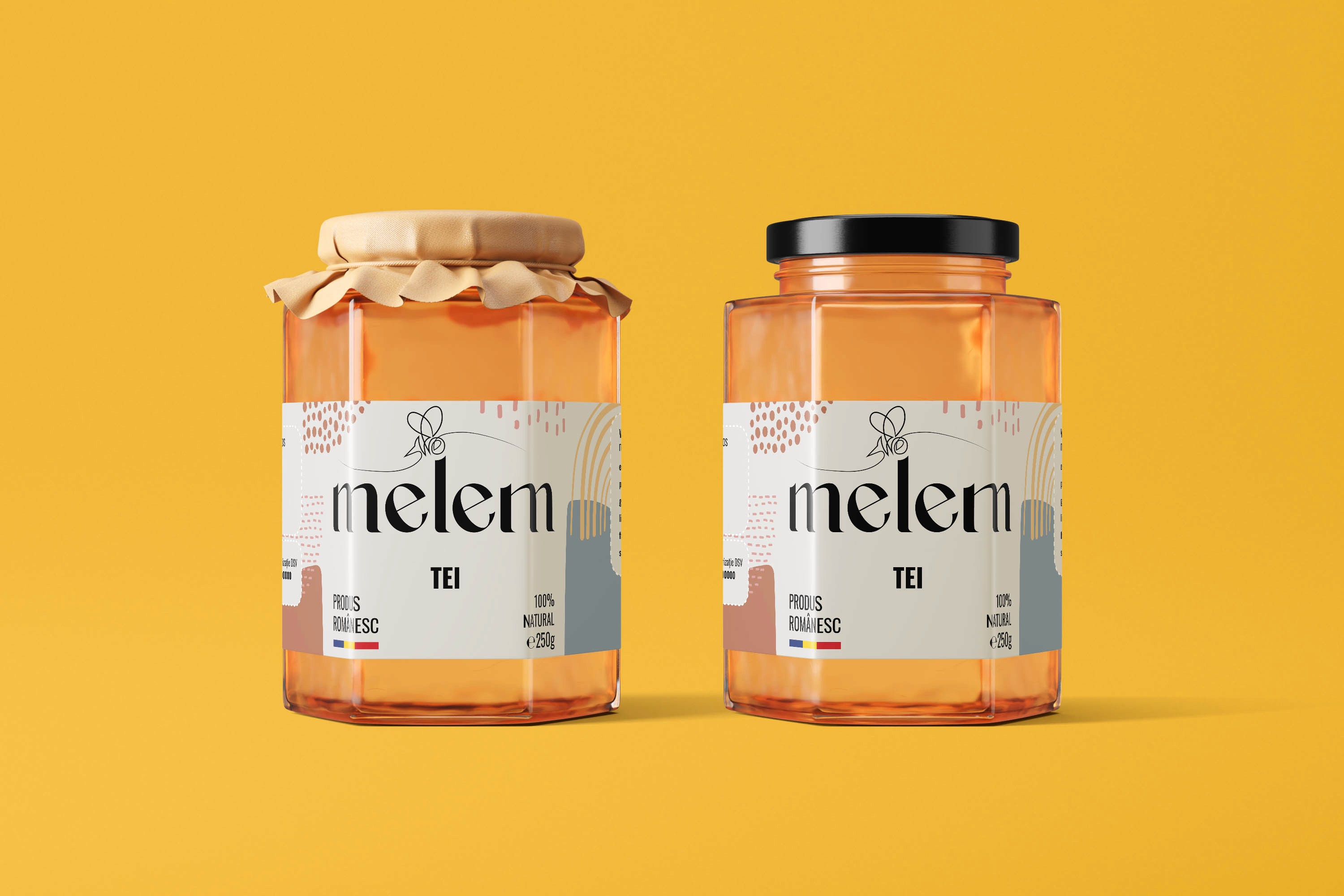 Pentru a întregi experiența brandului pe ambalajul produselor, am dezvoltat designul etichetelor pentru borcanele de miere. Am creat etichete prietenoase și atrăgătoare, care să prezinte vizual tipurile de miere și să ofere informații clare și concise despre originea, calitatea și proprietățile fiecărui sortiment. Am optat pentru un design cu elemente de culoare și texturi inspirate din natură, pentru a crea o conexiune emoțională cu consumatorii și a evidenția autenticitatea produselor.