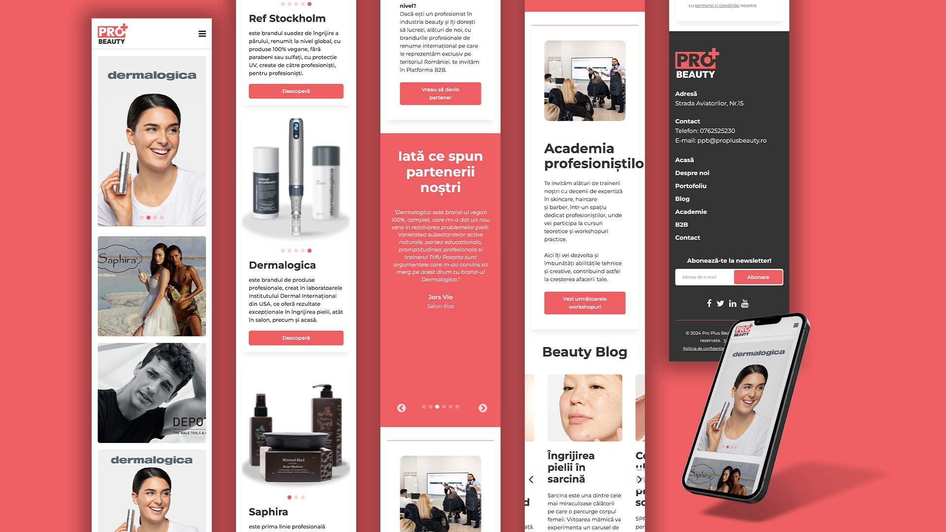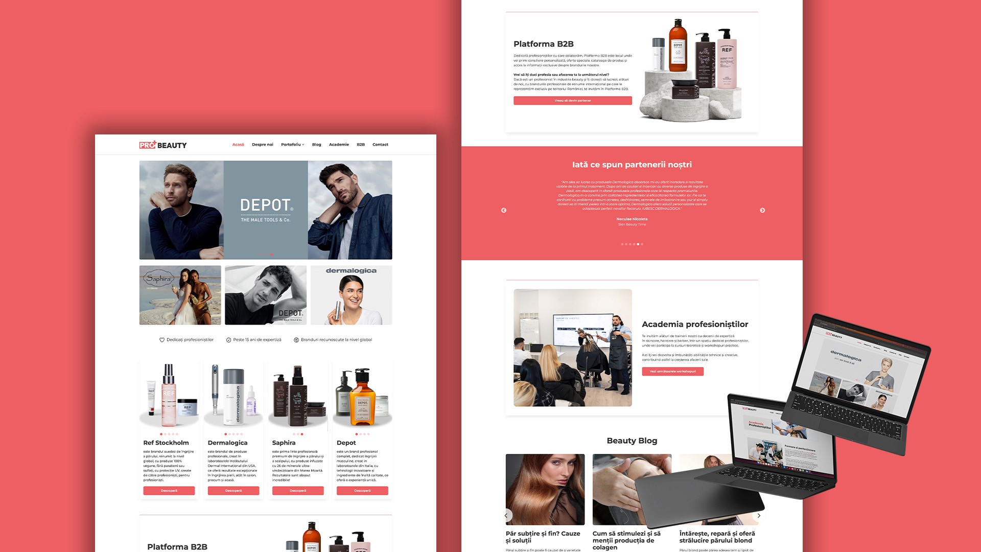 Conținut Educațional: Am inclus un blog și o secțiune pentru academie, oferind conținut valoros și resurse de dezvoltare profesională, consolidând expertiza brandului în industria frumuseții.